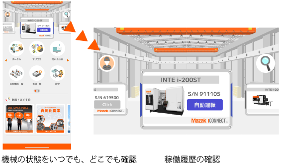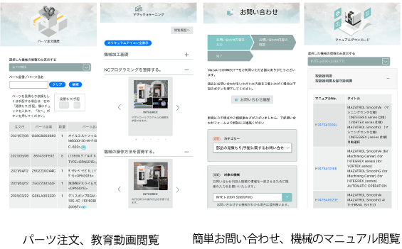 Mazak iCONNECT™は、インターネットを使ってお客様を支援する会員サービスです。「お客様」「マザック製の工作機械・レーザ加工機」そして「マザック」を最新技術でつなぐことで、生産性向上を支援します。加工支援機能、機械状態レポート、遠隔診断機能、メンテナンスサポートなど、さまざなまサポート機能を利用できます。